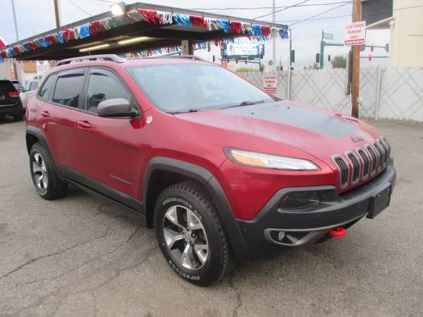 ***SPECIAL***SPECIAL***SPECIAL***HERE WE HAVE FOR SURE THE BEST DEAL EVER ON A 91K ORIGINAL MILES YES 91K ORIGINAL MILES THE ABSOLUTE CLEANEST BEST RUNNING FIRST CLASS ALL THE WAY 2015 JEEP CHEROKEE TRAILHAWK 4X4 SPORT UTILITY IN ARIZONA***THIS GOOD CAR FAX JEEP CHEROKEE TRAILHAWK 4X4 SPORT UTILITY IS THE BEST RIDE YOU COULD WANT FOR THIS CRAZY LOW PRICE BONUS IT ONLY HAS 91K MILES***THIS AMAZINGLY CLEAN JEEP SUV IS READY TO GO TO WORK PLAY PERFECT FOR FAMILIES STUDENTS OR ANYONE THAT WANTS A SUPER RUNNING FIRST CLASS RUNNING LOOKING SUV***IT HAS BEEN DEALER SERVICED 24 TIMES SINCE NEW WITH NO OPEN RECALLS AND RUNS LIKE NEW***FINALLY A SWEET CLEAN GREAT RUNNING GET AROUND JEEP CHEROKEE TRAILHAWK 4X4 SUV FOR ANYONE THAT WANTS A SUPER SUV THAT NOW EVERYONE CAN AFFORD IT BECAUSE ITS NOT OVERPRICED LIKE ALL THE OTHERS***IT COMES WITH AN AUTOMATIC TRANSMISSION BLIND SPOT ALERT 4X4 ROOF RACK BACK UP CAMERA HEATED LEATHER SEATS BLUETOOTH WIRELESS NAVIGATION SATELLITE HILL START ASSIST CONTROL SELE-TERRAIN TRACTION KEYLESS ENTRY/START ALARM ABS ICE COLD DUAL CLIMATE CONTROLLED AC REAR AC POWER WINDOWS DOOR LOCKS POWER PREMIUM SOUND MP3 TILT CRUISE PREMIUM WHEELS AND SO MUCH MORE***THIS IS IN PERFECT SHAPE BOTH RUNNING AND LOOKING***COME SEE IT TODAY FIRST CLASS GREAT RUNNING SUVs FOR WORK OR PLAY SELL SUPER FAST AND ARE POPULAR ESPECIALLY IN ARIZONA AND THE GOOD ONES LIKE THIS WITH 91K MILES AND 4X4 ARE SO HARD TO FIND***WE HAVE FINANCING HERE FOR EVERYONE SO DO NOT WAIT OR MISS THIS JEEP COME IN TODAY******CALL NOW ASK FOR JOHN DO NOT WAIT 602-509-9396.....